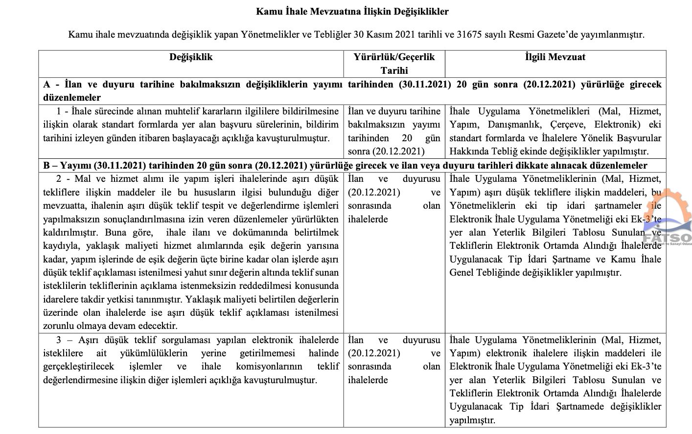 30.11.2021 tarihli ve 31675 sayılı Resmi Gazete'de Kamu İhale Kurumu tarafından aşağıda adları geçen yönetmelikler yayımlanmıştır.