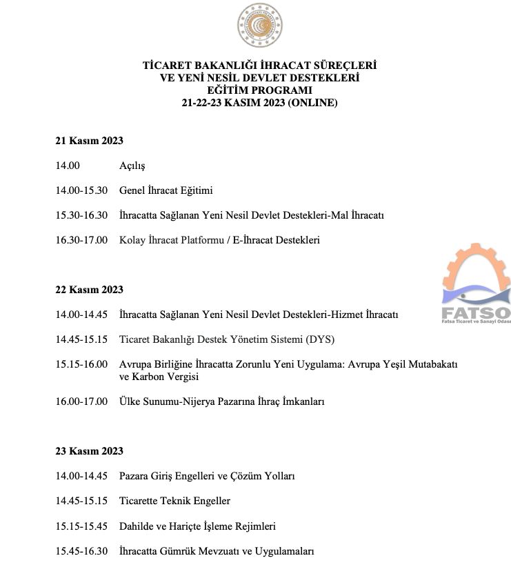 İhracat Süreçleri ve Yeni Nesil Devlet Destekleri Eğitim Programı 21-22-23 Kasım
