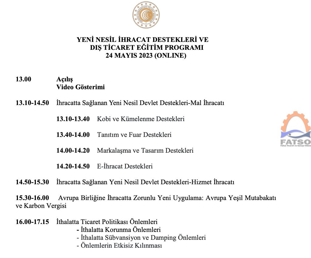 İhracat Süreçleri ve Devlet Destekleri Eğitim Programı 21, 22, 23 Ekim 2025